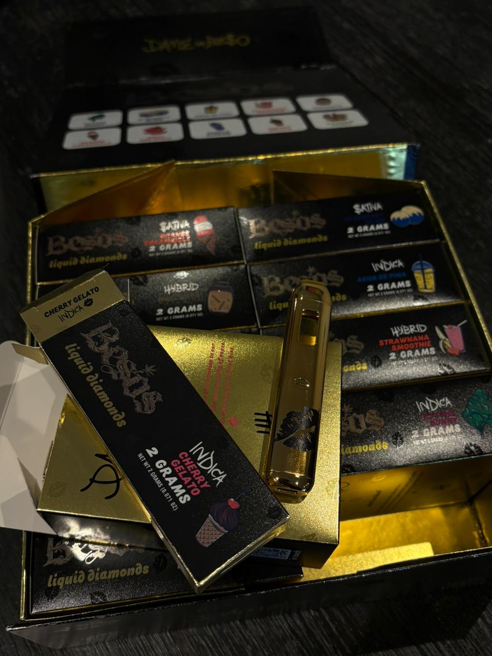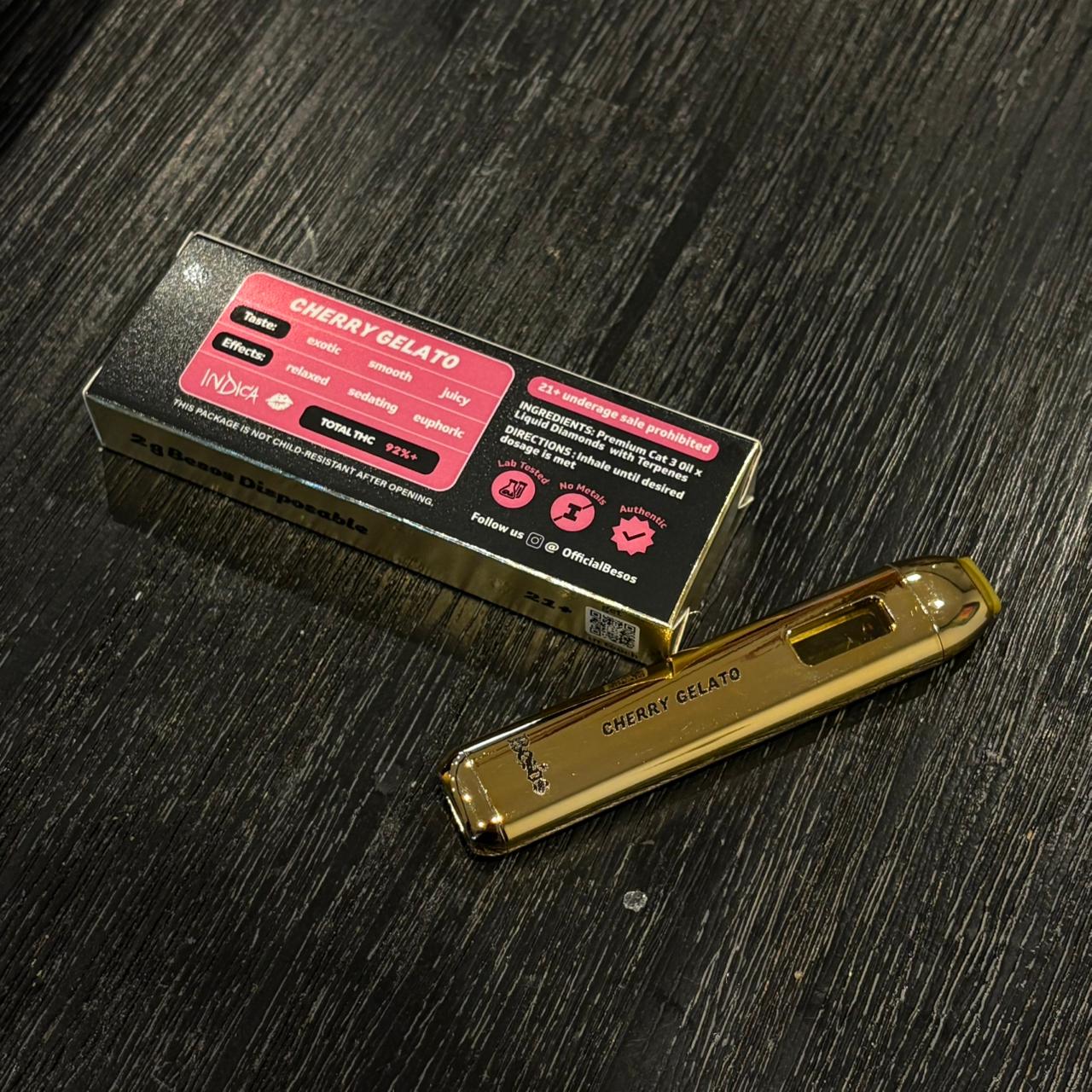 El vaper Besos 2g desechable es fácil de usar y listo para usarse directo de la caja. La cannabis más pura del planeta. Es creado cuando la resina viva es extraída de flor fresca, estos diamantes líquidos de THC cubiertos de terpenes dan un forma a una deliciosa combinación de sabores que deleitan tu boca.